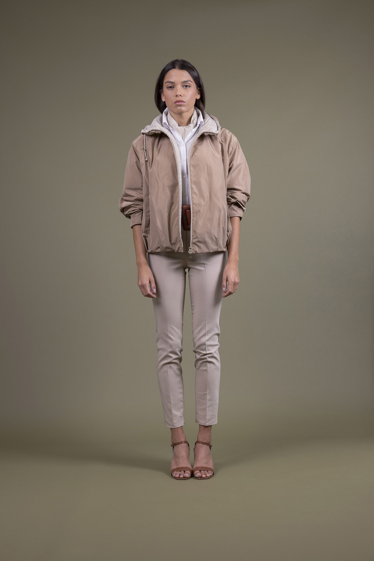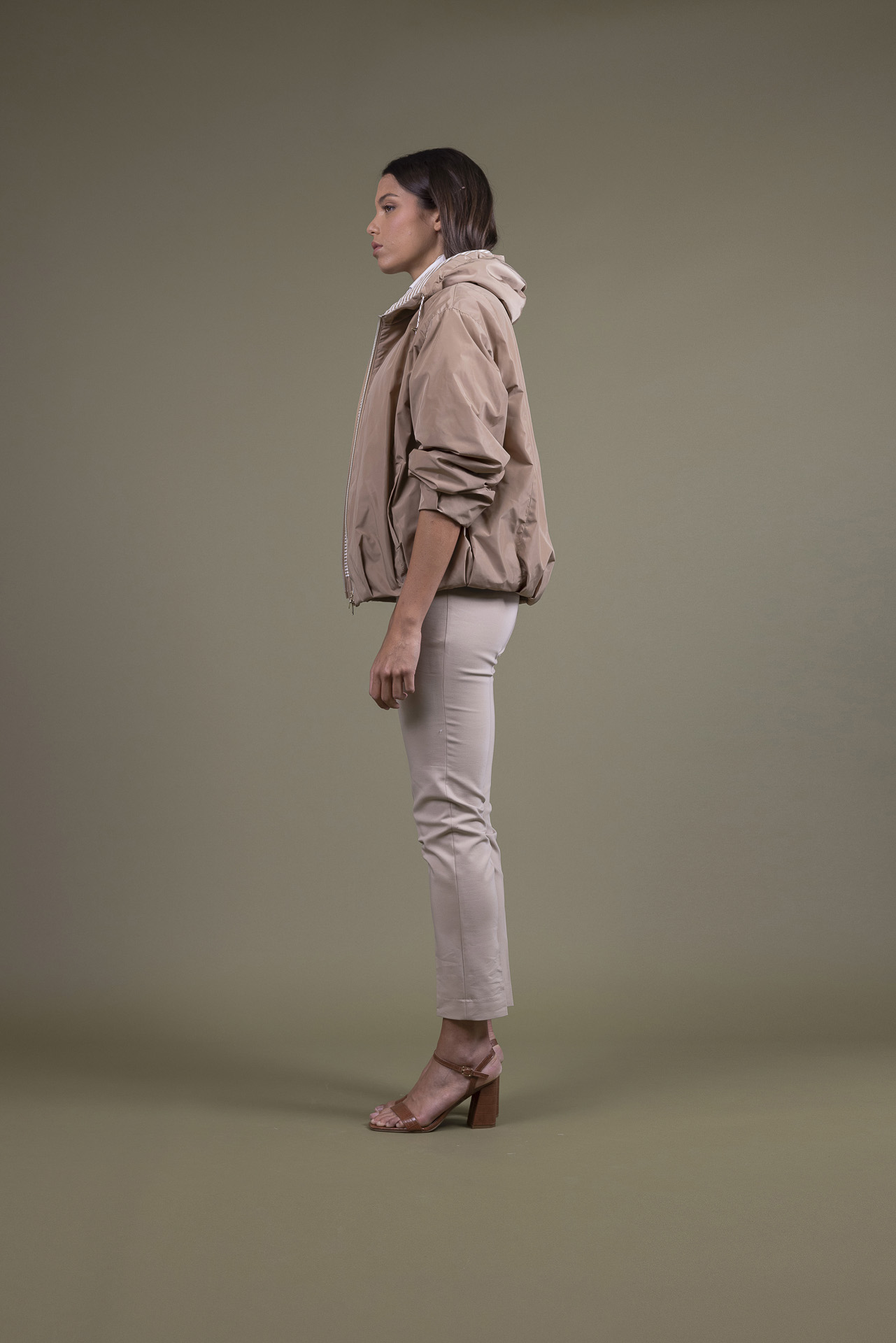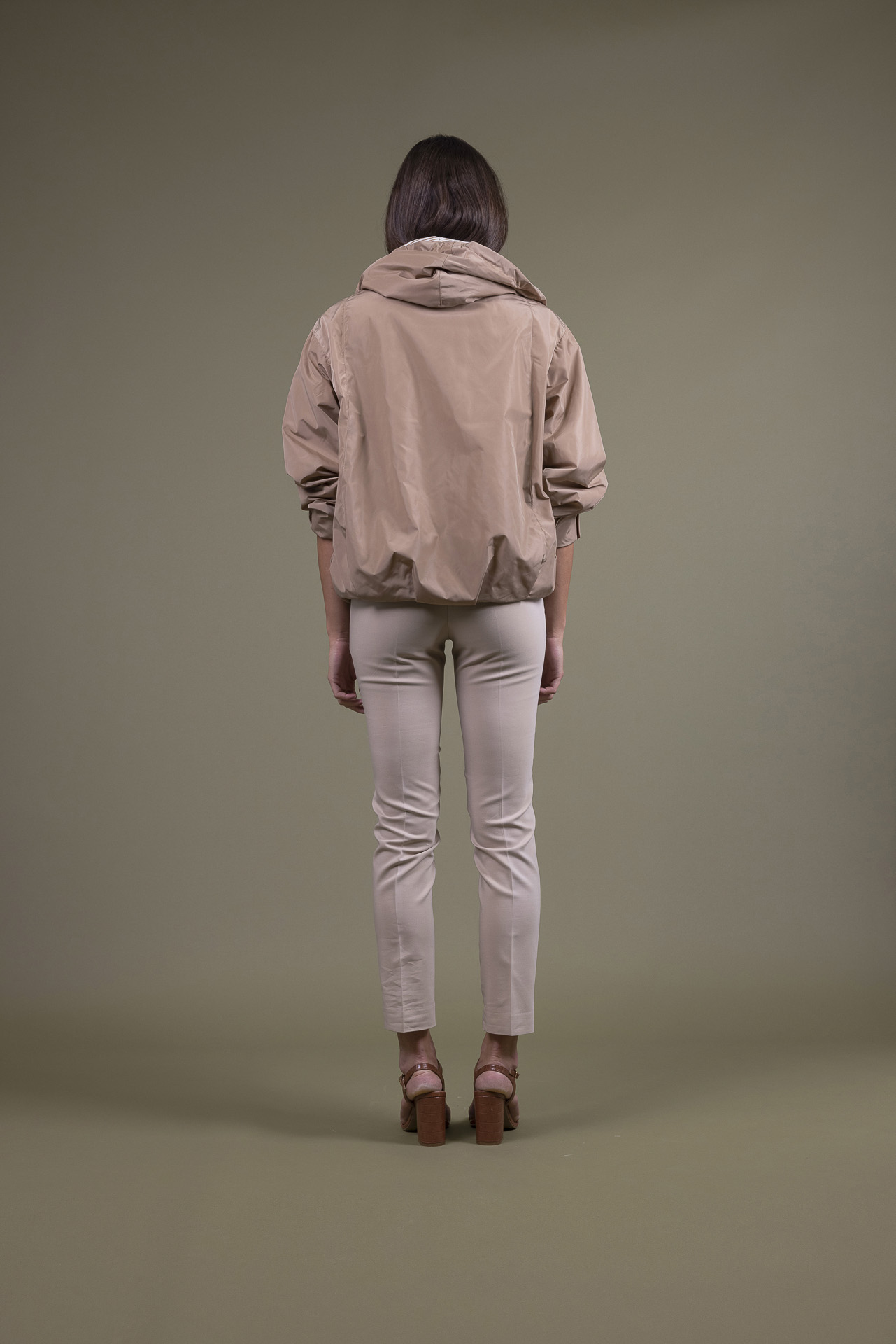 Giacca in taffettas tecnico leggermente imbottita, semplice ma estremamente fashion nelle linee. Il suo colore naturale darà una sferzata di energia alle intense giornate primaverili. È chiuso con zip, maniche con polso modellato da pieghe come l’orlo del dosso. Un must have immancabile del guardaroba.