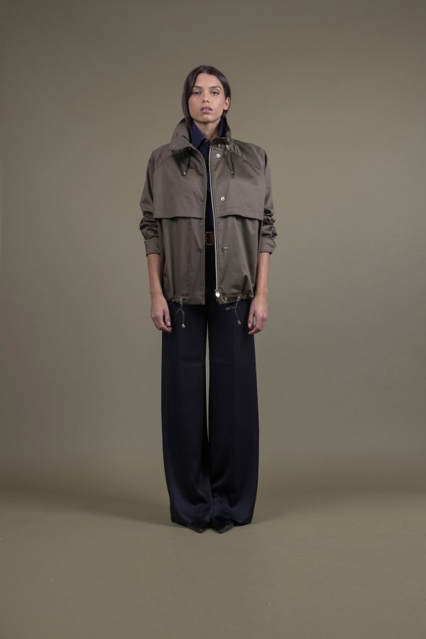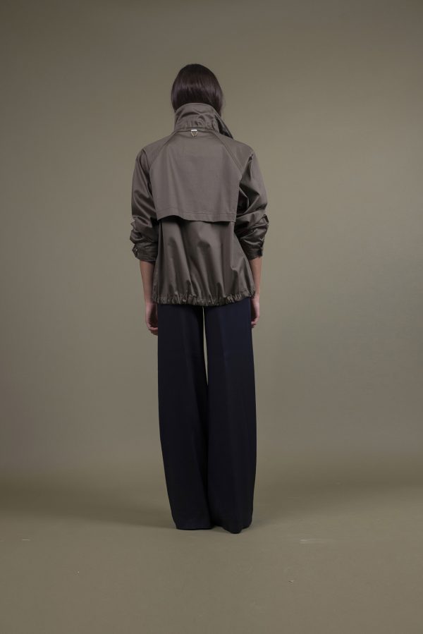 Dettagli: Coulisse regolabili collo e dosso, manica con laccio regolabile, tasche inserite nel taglio del fianchetto, cuciture bordate
