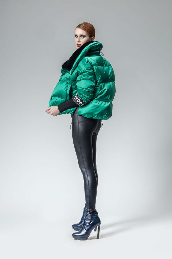 Giubbotto bomber in tessuto Nylon effetto satinato, con piccolo collo di pelliccia staccabile e con fodera stampata. La lucentezza radiosa di questo capo è semplicemente notevole. Le linee variabili fanno risaltare i dettagli, conferendo a questo capo una femminilità ed eleganza uniche.